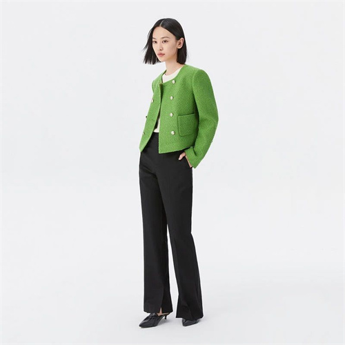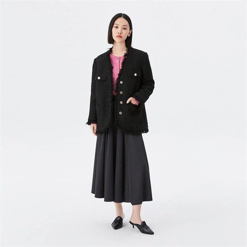 小香風(fēng)外套多見于簡(jiǎn)潔大方的H型廓形,