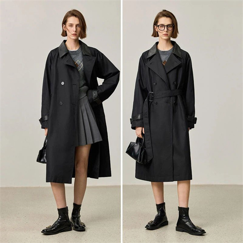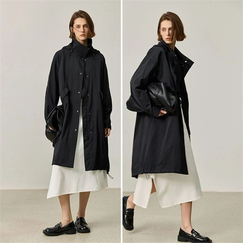 風(fēng)衣+黑色素雅長裙