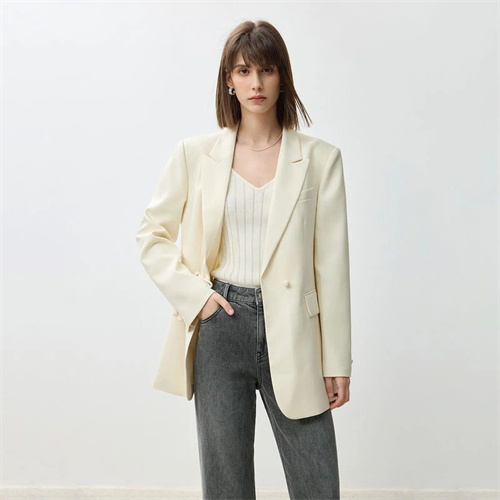 ,面料摸起來有絨感,穿起來又輕盈又舒服,微微墊肩看起來很利落。