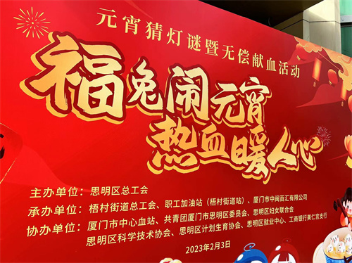 為響應(yīng)廈門市正在開展的“2023年熱血送溫暖 為生命接力”無償獻血活動,中閩百匯黨支部組織黨員于2023年2月3日參加了“福兔鬧元宵熱血暖人心”無償獻血活動,為愛護航,為生命接力。