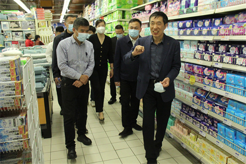 2023年4月11日,泉州市市委常委、宣傳部部長(zhǎng)、秘書長(zhǎng)陳輝宗帶領(lǐng)市商務(wù)局、市市場(chǎng)監(jiān)管局等部門分管領(lǐng)導(dǎo),蒞臨中閩百匯涂門店開展食品安全“兩個(gè)責(zé)任”督導(dǎo),并與我司陳開通總裁現(xiàn)場(chǎng)交流,指導(dǎo)企業(yè)落實(shí)食品安全主體責(zé)任。