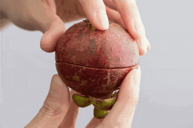 用手按住山竹,然后兩側(cè)同時(shí)用力,山竹的外皮就會(huì)自己裂開。