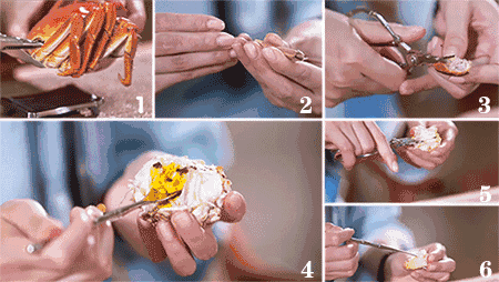 5-6:剪開(kāi)蟹身,即可用蟹刺剔出蟹肉。