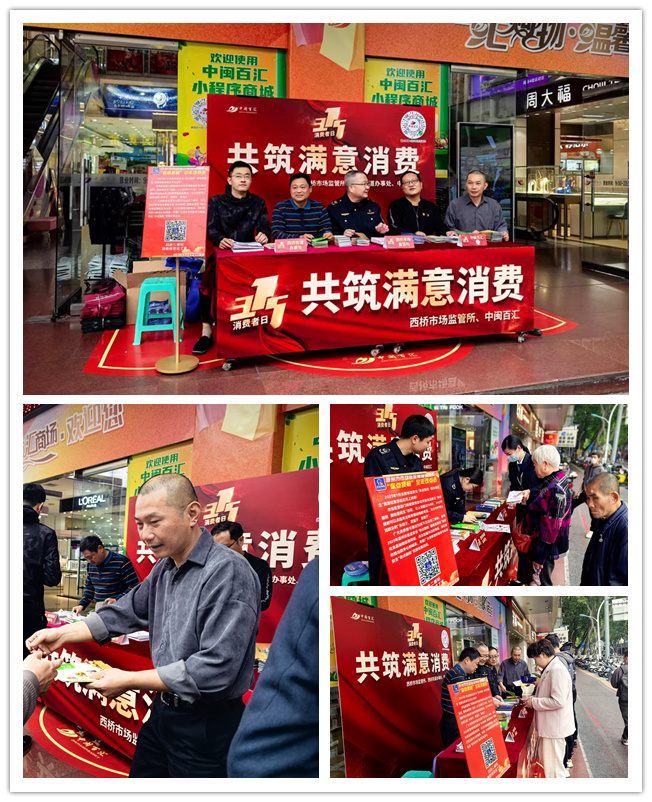 2025年3月14日,中閩百匯漳州商場(chǎng)聯(lián)合漳州市西橋市場(chǎng)監(jiān)管所、西橋街道辦事處,在商場(chǎng)正大門舉辦“共筑3.15滿意消費(fèi)”活動(dòng),現(xiàn)場(chǎng)發(fā)放“食品安全手冊(cè)”、接受消費(fèi)者咨詢并進(jìn)行有獎(jiǎng)知識(shí)問答活動(dòng)。